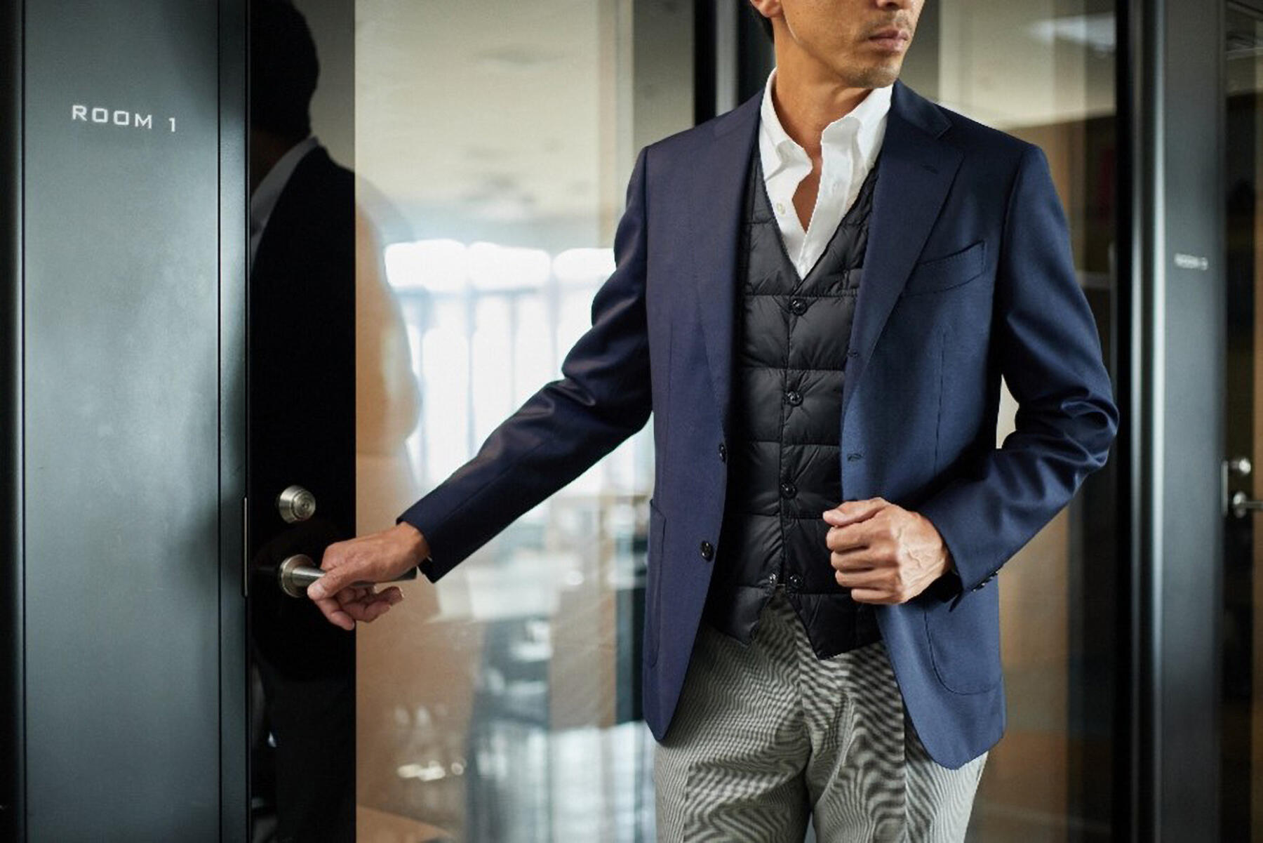 これにより、ジャケットを着てももたつかず、洗練されたスマートな着こなしを維持しながら、しっかりと暖かさを得ることができます。